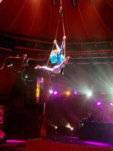 Réalisation de trois numéros aériens pour un évènement privé au Cabaret Sauvage : Tissu aérien, Cerceau aérien et Trapèze.